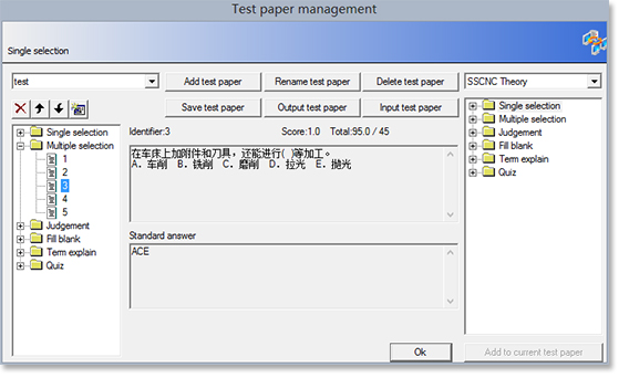 Swansoft Paperless Exam System (SSPES, for short) is developed by Nanjing Swansoft Technology Company. It must runs in local area network. The software can be used for making quiz or final test online. It has functions including generates test paper randomly, grades paper automatically, analyses the scores and exports them. This can reduce teacher's heavy burdens and save more resources. At the same time, the software can work with other special simulators such as SSCNC developed by Nanjing Swansoft Technology Company to accomplish special test.