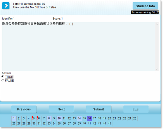 9. It supports six question types which are: multiple choices with one/multiple correct answers, judgment(true/false), blank filling, identification(comment and explain), and essay.