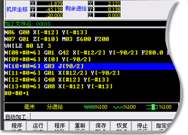 HNC -21M NC system equips powerful macro function similar with high language. Consumer can use variable to do arithmetic operation, logical operation and functional hybrid operation. Moreover, macro provides loop statement, branch statement and subprogram calling statement to make program editing of complex components easy, and reduce , even avoid, cockamamie numerical evaluation.
