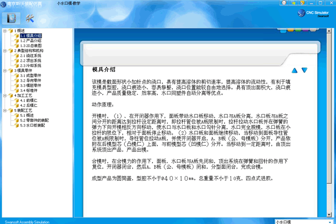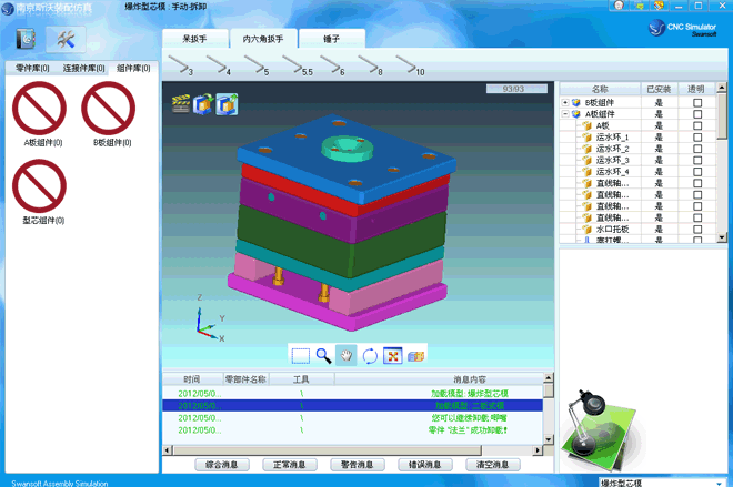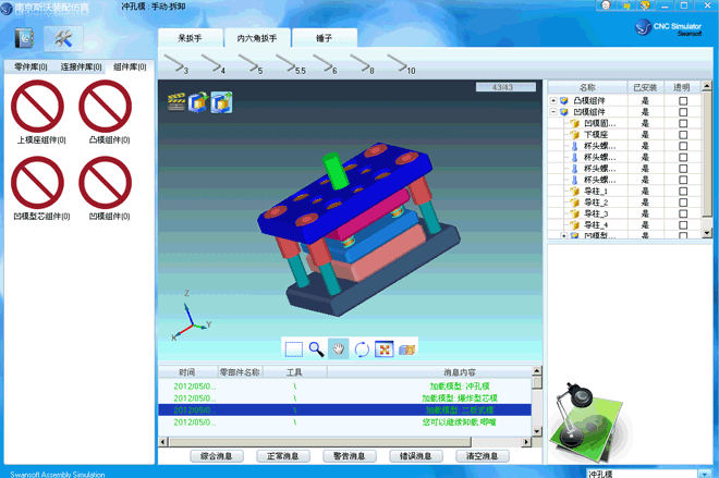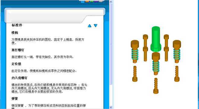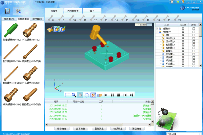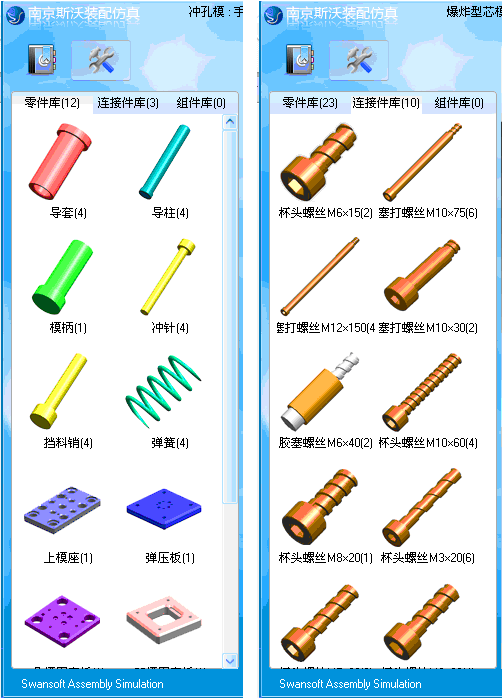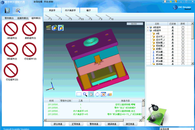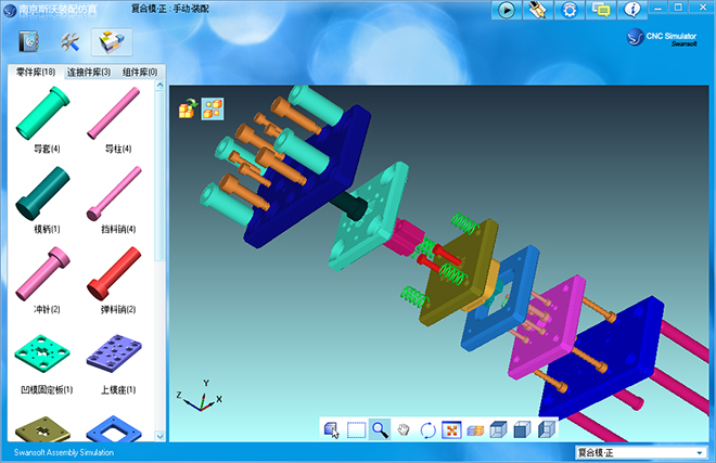 南京斯沃軟件技術(shù)有限公司開發(fā)的裝配仿真軟件,是一款針對機(jī)械結(jié)構(gòu)拆卸和裝配的三維仿真軟件。該軟件支持自動裝配與拆卸、3D交互方式的手動裝配與拆卸、零件與組件的拆卸與裝配、裝配過程所需工具的選擇以及拆裝全過程的信息記錄與提示等功能,具有真實(shí)感強(qiáng)、操作簡單、便于自學(xué)等優(yōu)點(diǎn)。軟件網(wǎng)絡(luò)版更適合學(xué)校和培訓(xùn)機(jī)構(gòu)教學(xué),教師通過軟件服務(wù)器進(jìn)行在線考試和網(wǎng)絡(luò)監(jiān)控,實(shí)時(shí)與學(xué)生機(jī)交互信息。