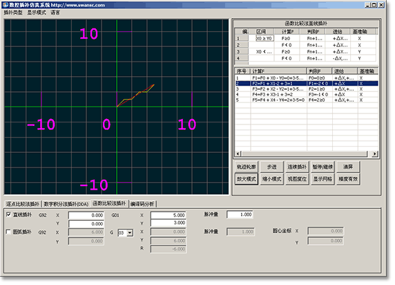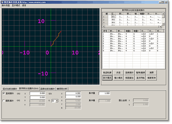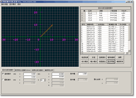 斯沃?jǐn)?shù)控插補(bǔ)仿真軟件是一款針對(duì)數(shù)控專業(yè)開發(fā)的插補(bǔ)運(yùn)算仿真器,主要用于學(xué)習(xí)數(shù)控機(jī)床的插補(bǔ)運(yùn)算原理,以圖形化的界面和實(shí)時(shí)交互的方式讓學(xué)生更好地理解各種插補(bǔ)方法的原理;同時(shí)還仿真了數(shù)控機(jī)床的編譯碼原理。軟件適合學(xué)生自學(xué),也適合大專職校對(duì)機(jī)床原理授課的輔助教學(xué)需求。