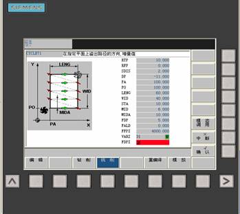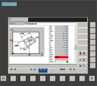 使用循環(huán)CYCLE71可以銑削任意一個(gè)矩形平面。該循環(huán)區(qū)分粗加工(分幾步對平面進(jìn)行粗加工,直至精加工雨量)和精加工(對平面進(jìn)行一次銑削)。在寬度和深度方面可以規(guī)定最大的進(jìn)刀。該循環(huán)不帶銑刀半徑補(bǔ)償進(jìn)行加工??者\(yùn)行時(shí)執(zhí)行深度加工。