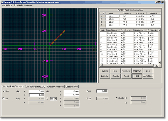 SSCNC Interpolation simulation software is developed by Nanjing Swansoft Technology Company. This software is a CNC interpolation calculator for the numerical control specialty. It is suitable for students to self-study, for it has graphical user interface and real time interoperation that shows all kinds of interpolation principles and CNC machine coding principles. It is also suitable for vocational and technical school or colledge to teach CNC machine theory.